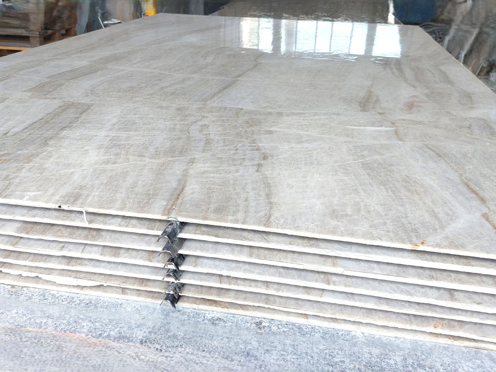 Re-In4™ utilizes established gluing technologies and newly developed eco-friendly adhesive processes, ensuring strong and reliable reinforcement. Post-processing, the reinforced tiles and stones can be cut into various sizes using traditional tools, including wet or dry diamond saws and water jet cutting machines.